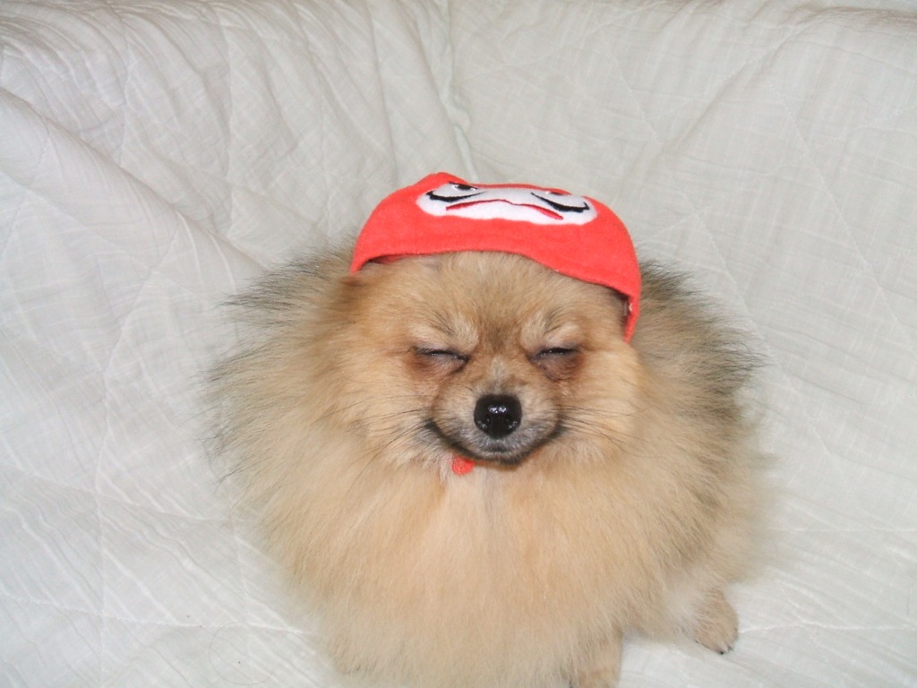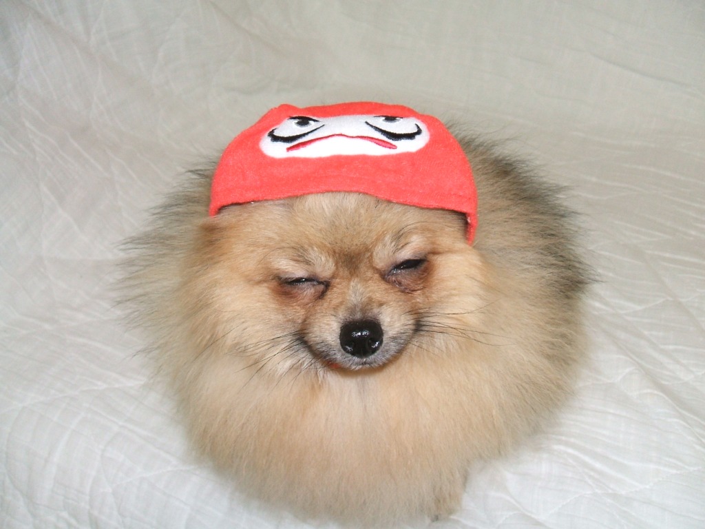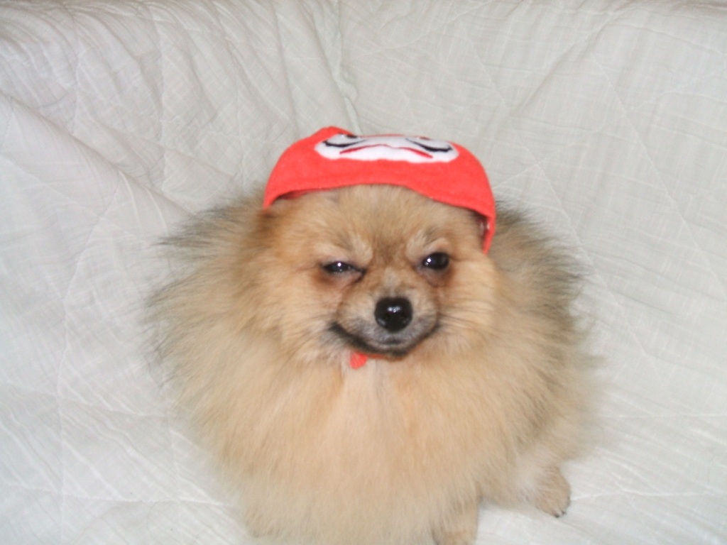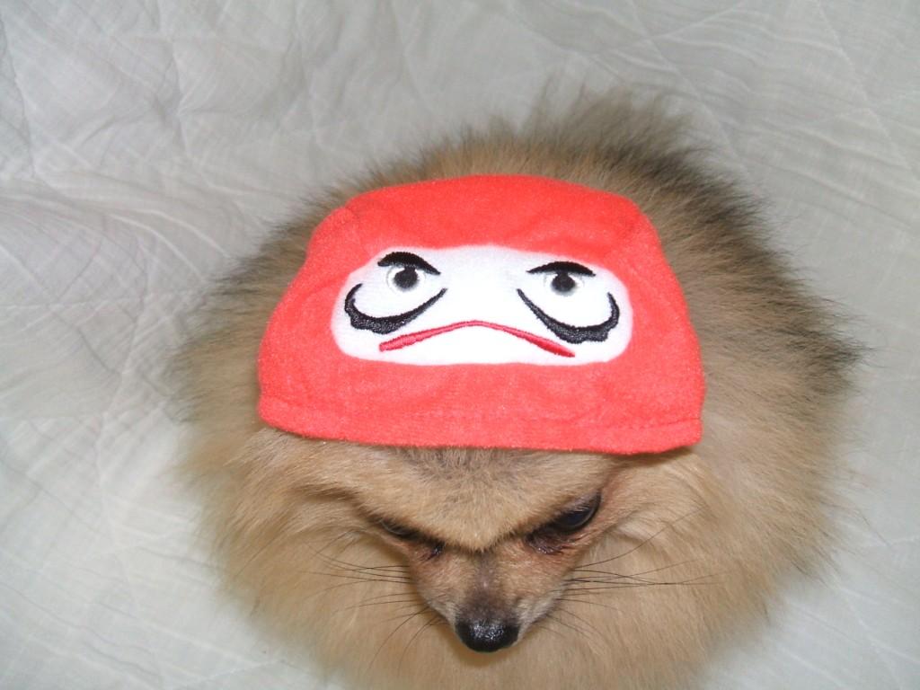 この時期は、1年に一度いやな被り物をしなくてはいけないエリの受難の時期だ。