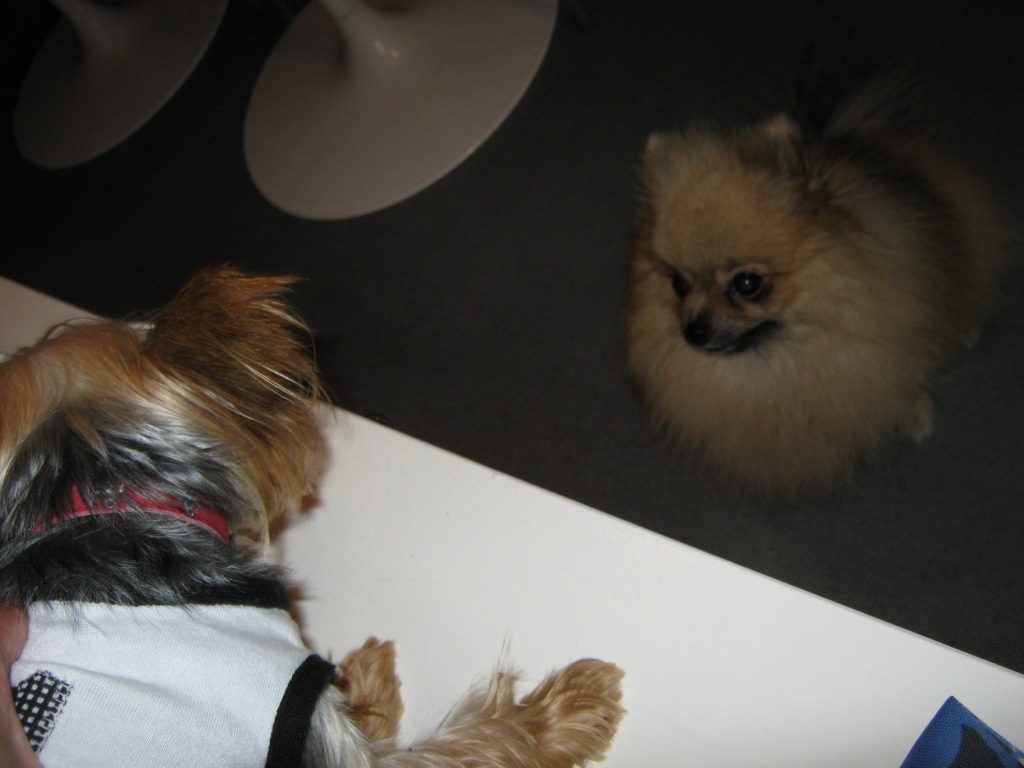 珍しく向こうから挨拶しにきたと思って喜んで挨拶したら人(犬)違いだったことに気づいた・・・のだと思われる