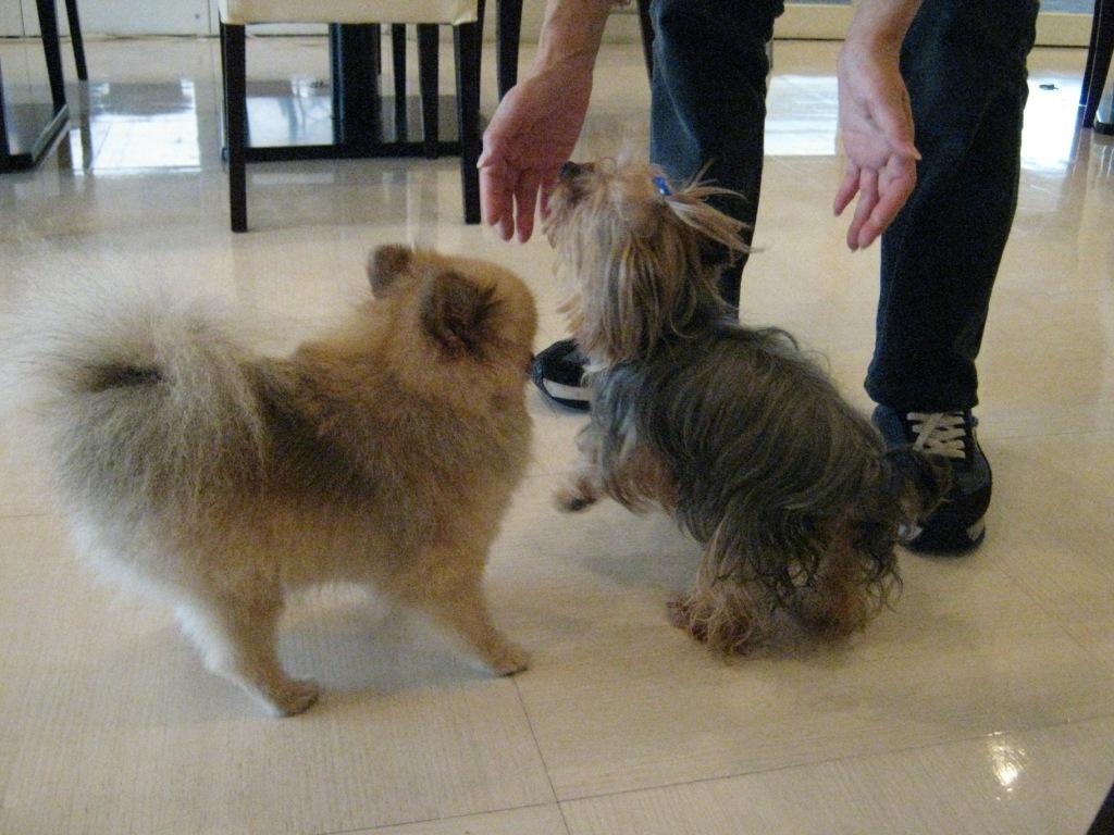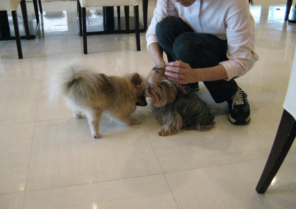 ちょっと前に犬用スコーンを分け合って食べて以来この店のランちゃんと仲良くなったエリ