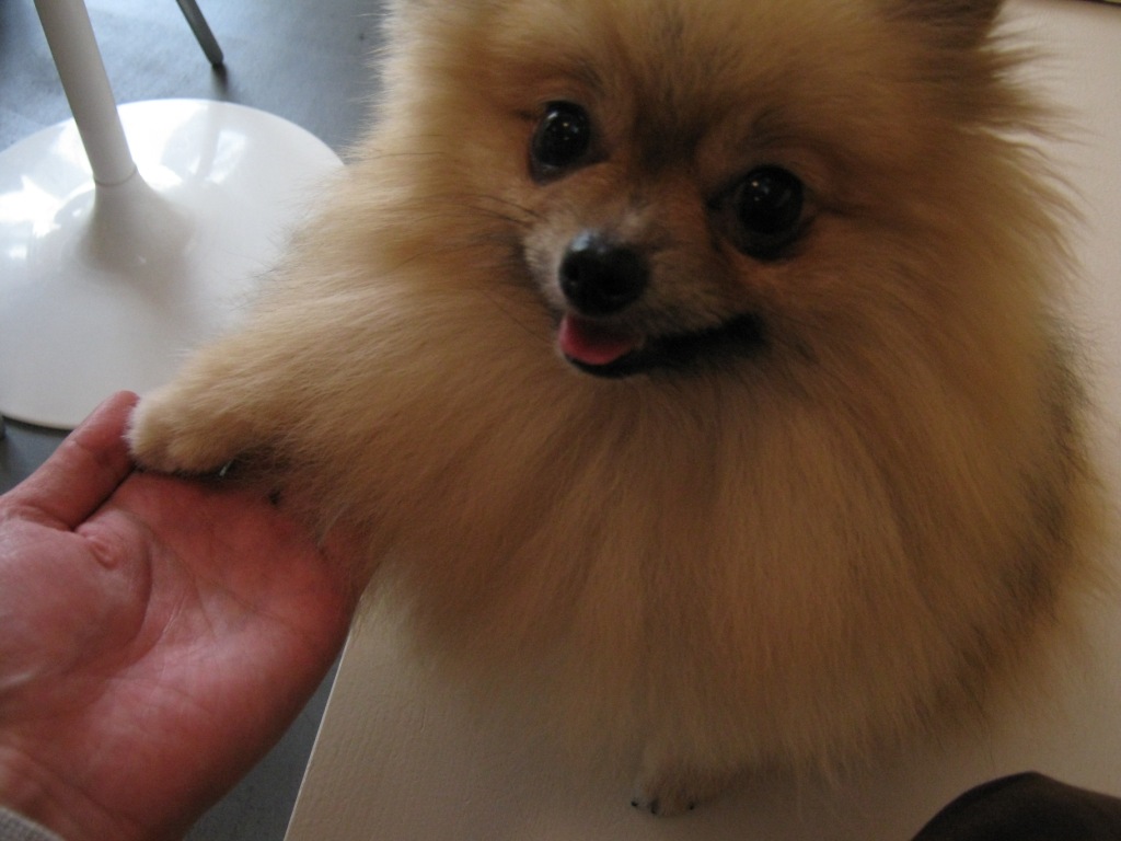 嬉しそうに見えるのは、犬用のパンが運ばれてきたからだろう
