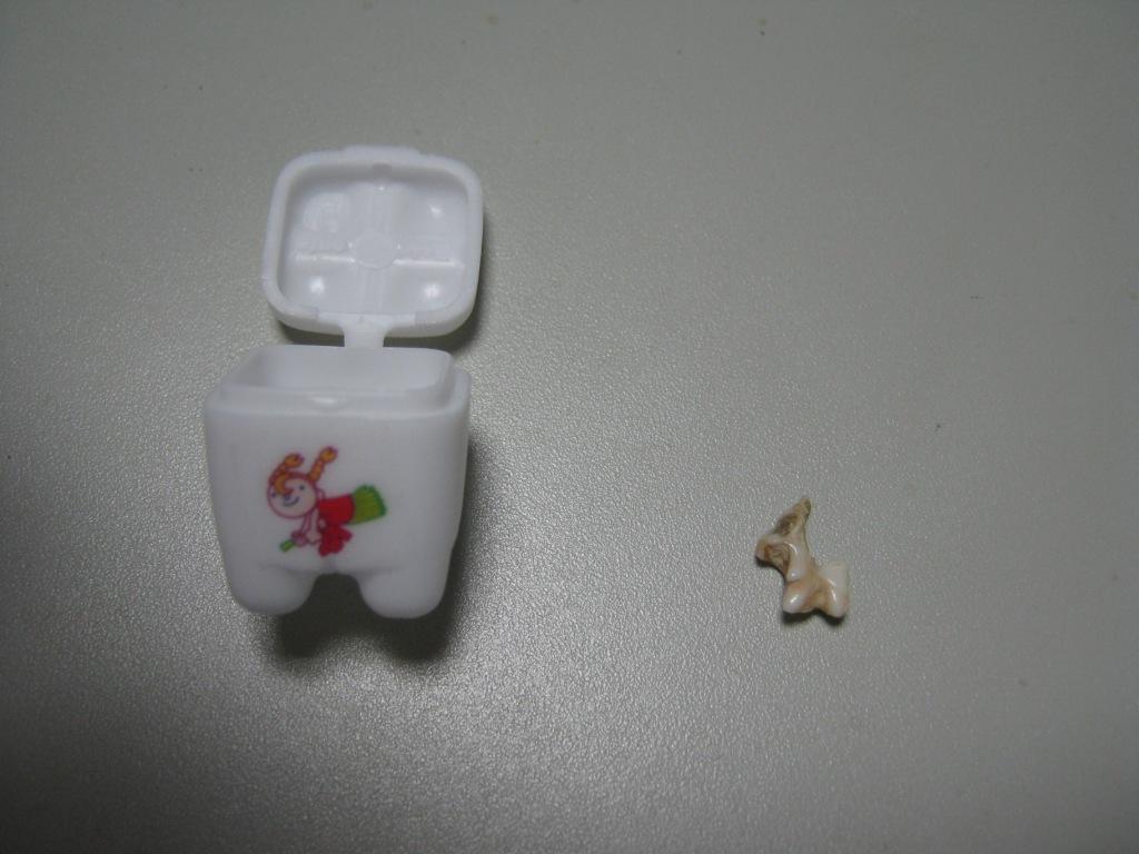 今度獣医に行った時に見せようと当院で抜去歯を子供に渡す時に使っている入れ物に入れておく事にする