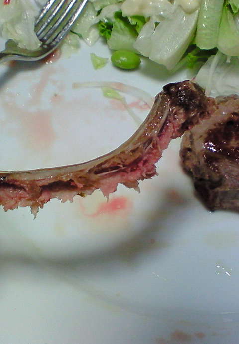 結構食べるのがこれ、ラムステーキだ。