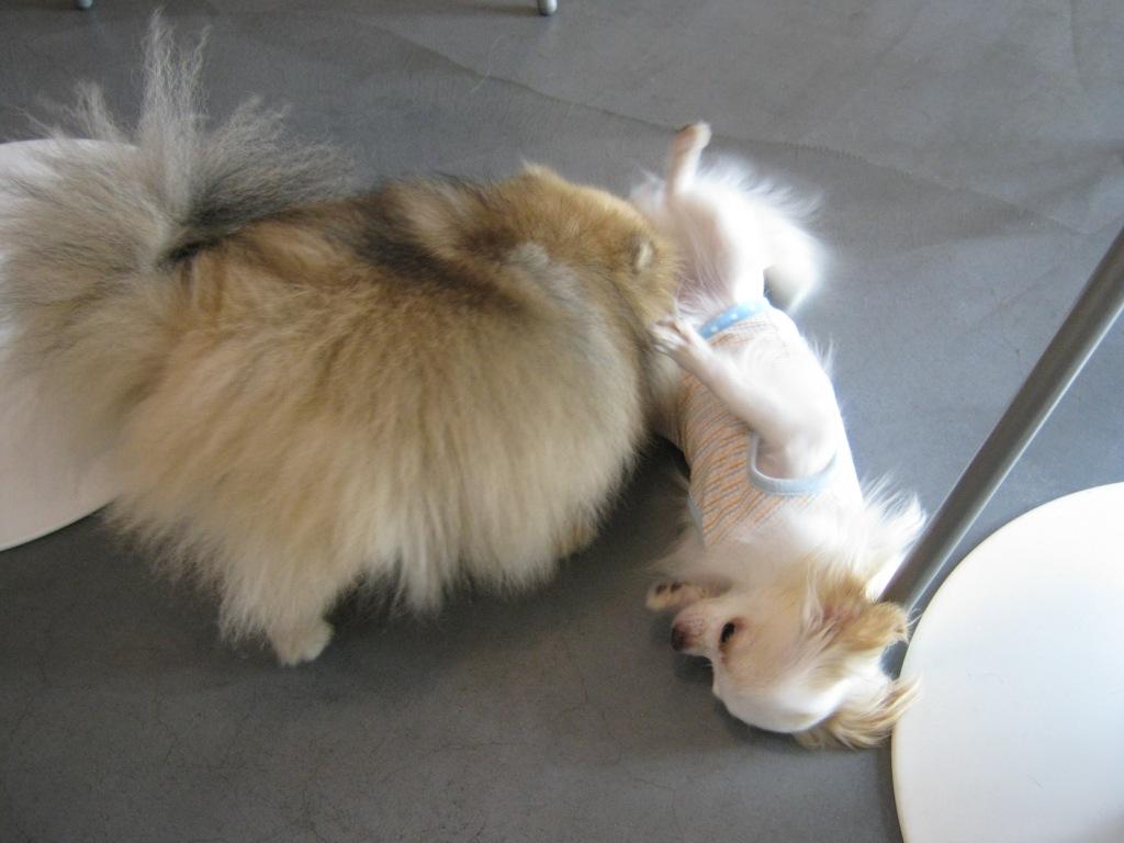 疲れて寝てます しかし、相手がオスとかメスとか関係ないのか この犬は・・・