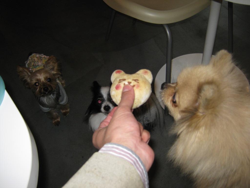この日は店の犬2匹居たので大きめのパンを注文して3匹で取りあって食べる