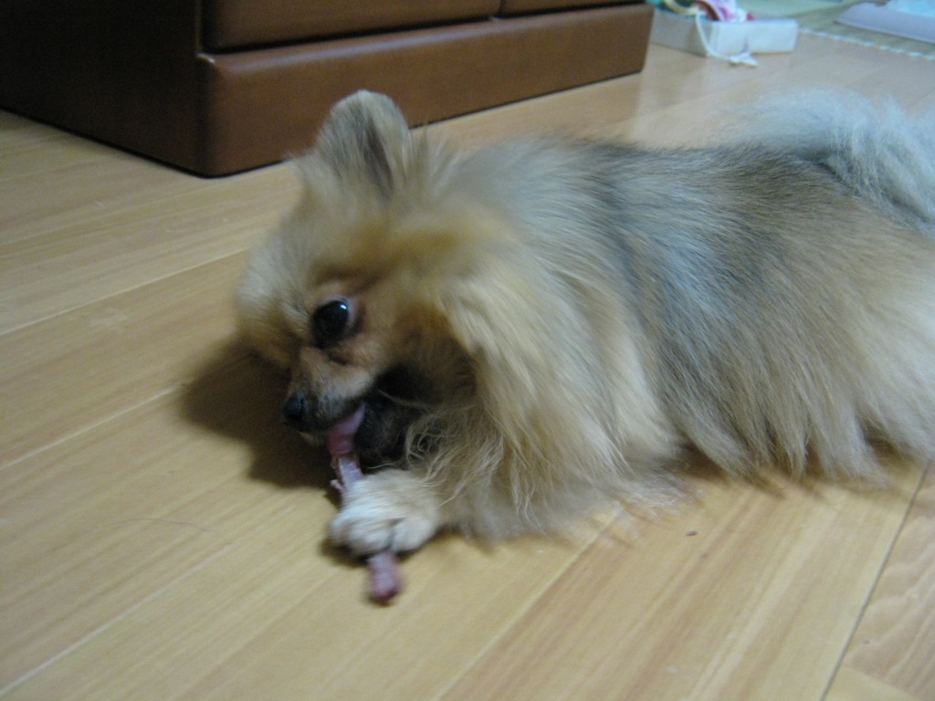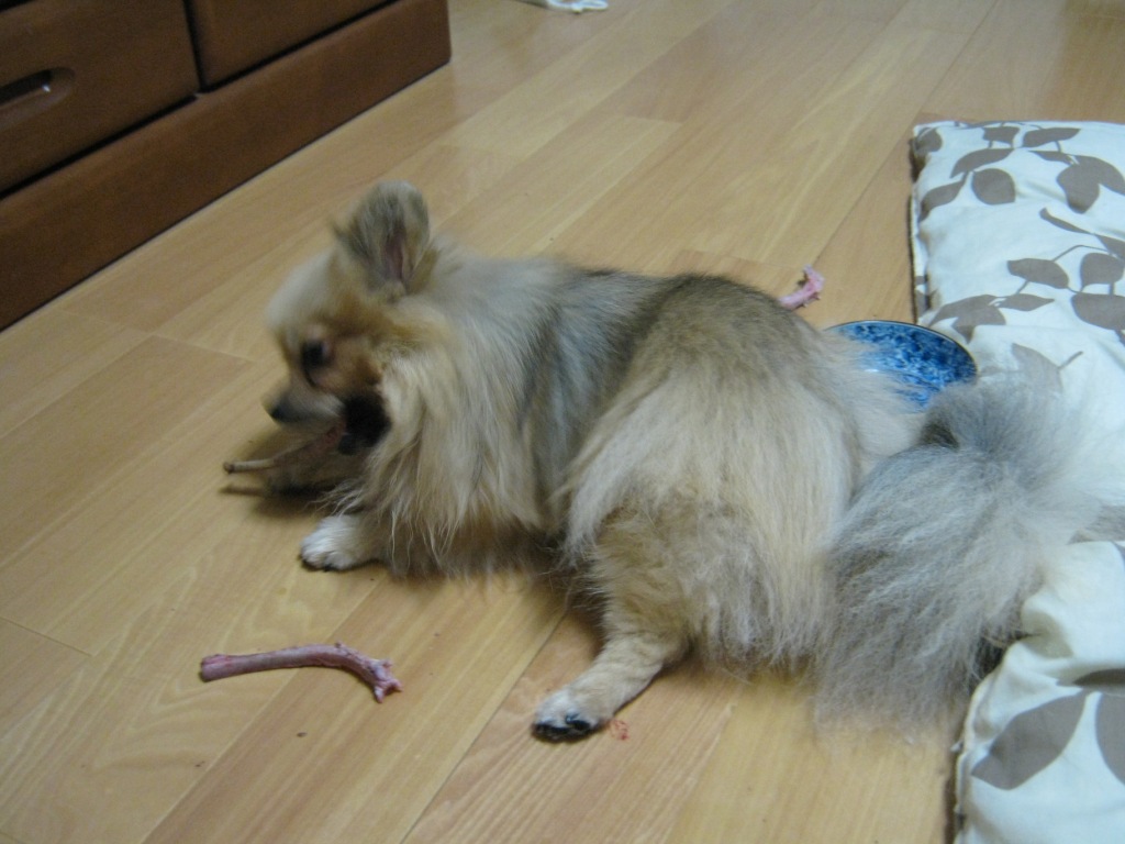 実は最近愛犬のエリが「もう使わなくなったオモチャ箱」の中から半年以上前のラムの骨を引っ張り出して齧っているのである