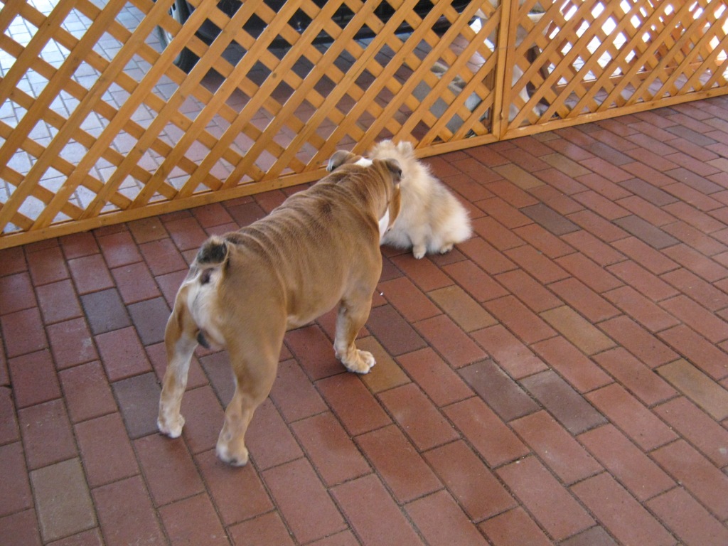 このブルちゃん、遊びたいらしくエリと鬼ごっこが始まる