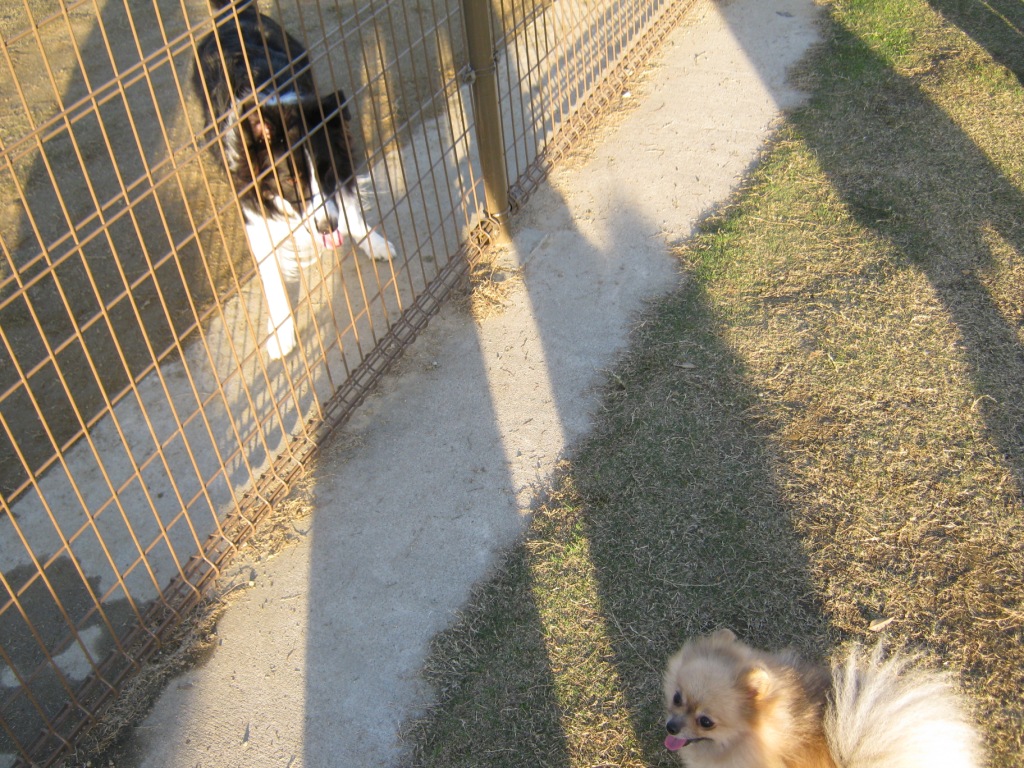 他の犬にもちょっかい出されてシッポが少し下がり気味