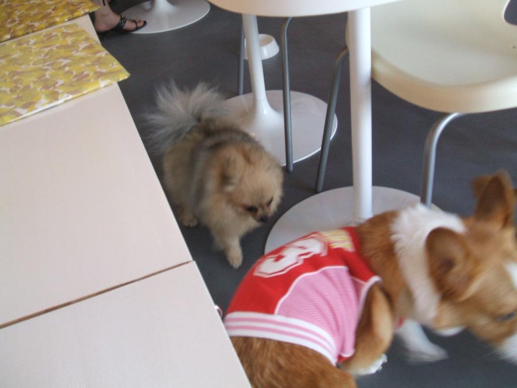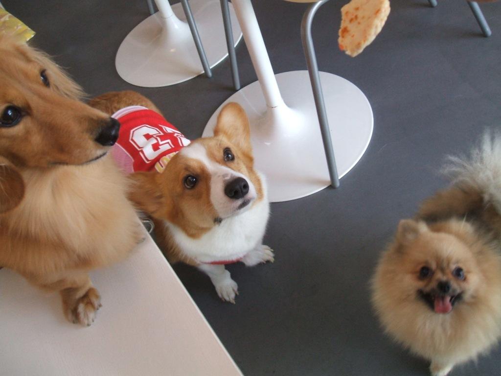 流石にコーギーちゃんは遠慮気味だったが、いっしょに食事すれば仲良くなれるものだ。