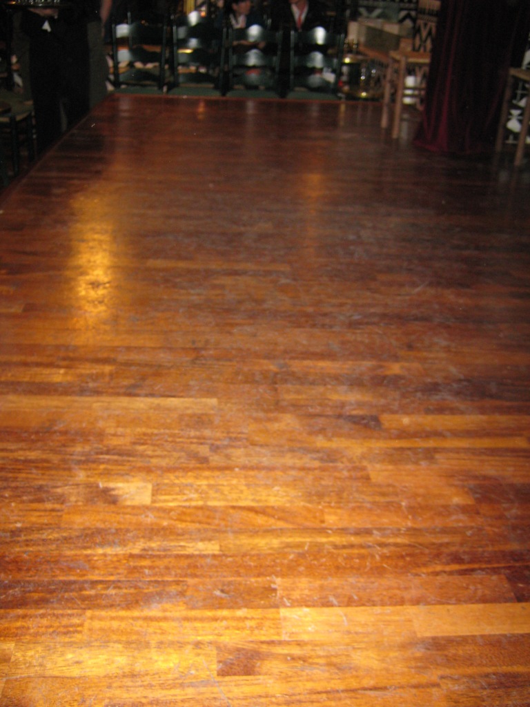 よくみると、ステージの床はタップで踏まれて歴史ある傷を刻んでいた