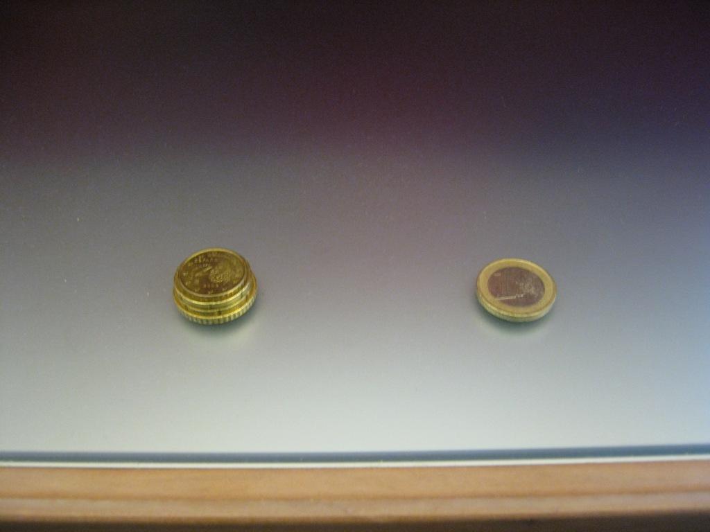 ・・・ので合わせて1ユーロ分の硬貨を積み上げておいておく