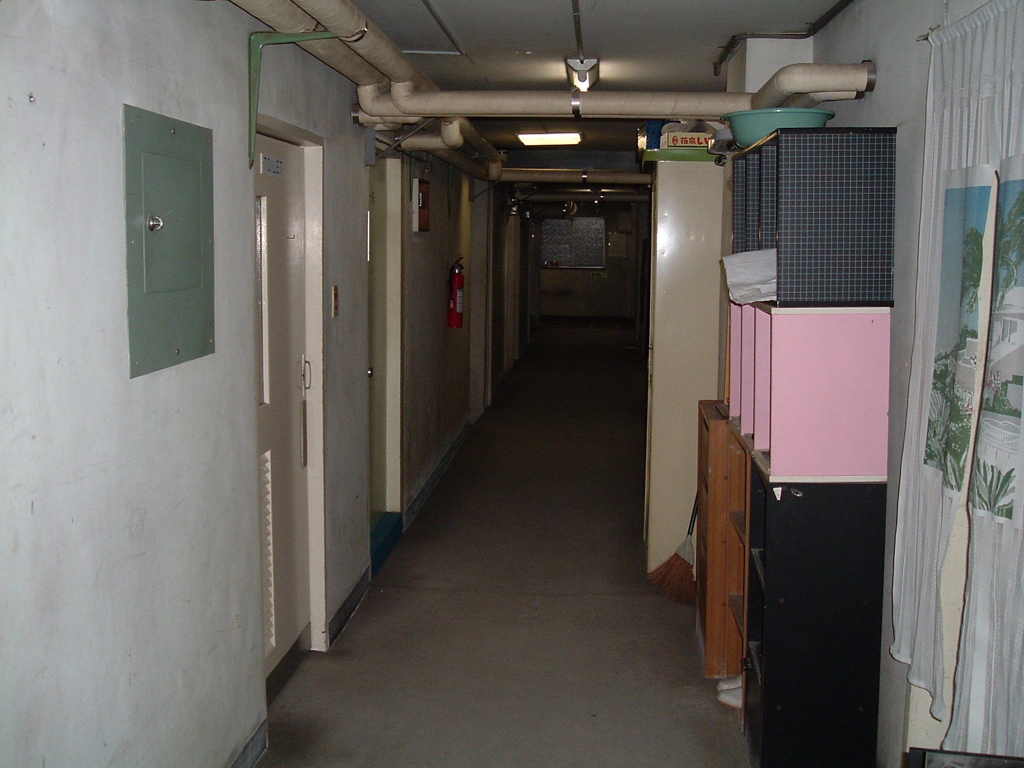 圭友会館のヌシが住むと言われる場所に近づく 突き当りを左に
