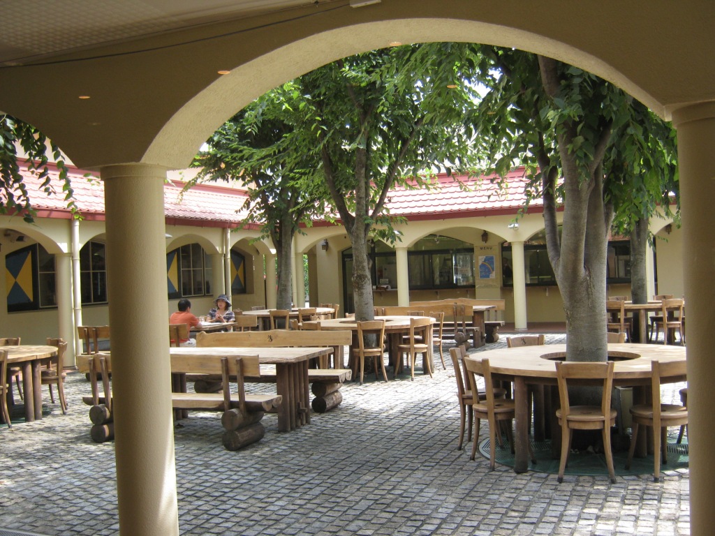 屋外にも食べるところはあった、暑い日に外でビールというのは最高のシチュエーションだったが、ジャイアンは私以上の暑がりなので屋内で食べる