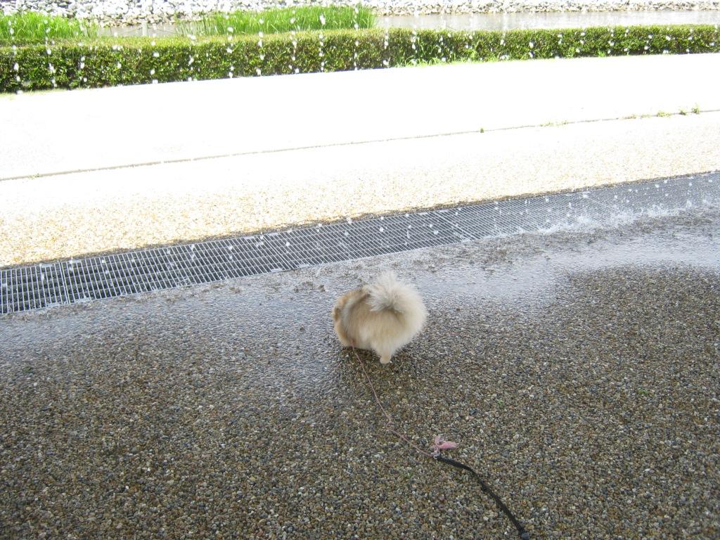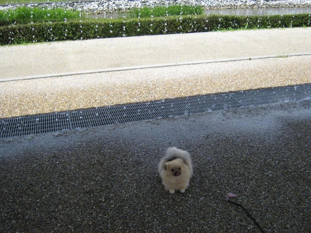 帰るとモモちゃんがホースの水に顔を突っ込んでじゃれたとかでびしょ濡れの顔で歓迎しにきた