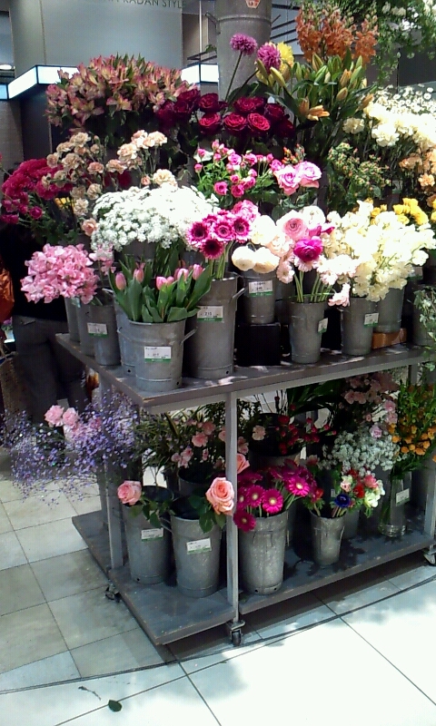 駅の構内の花屋で少しの時間 花の香りを楽しむ