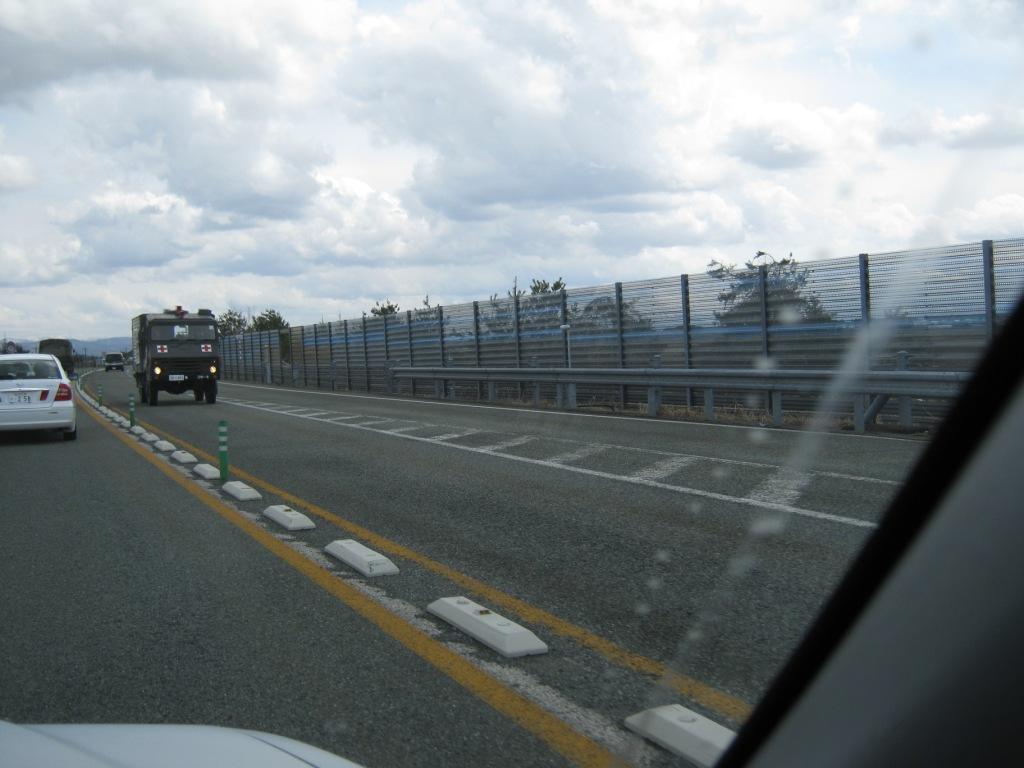 で、こちらに来るまでかなり見た 進むにつれて多くなっているのが自衛隊の災害救助の車である