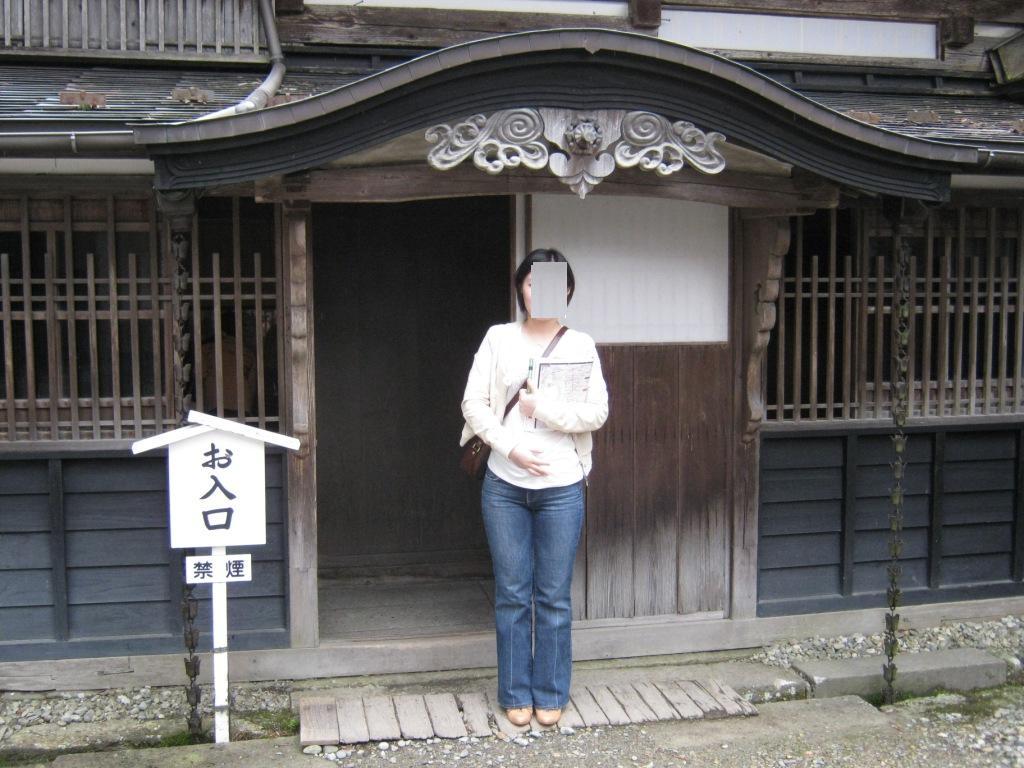 薬医門とかいったか?入口が低い 写真はヨメ 背は低い方