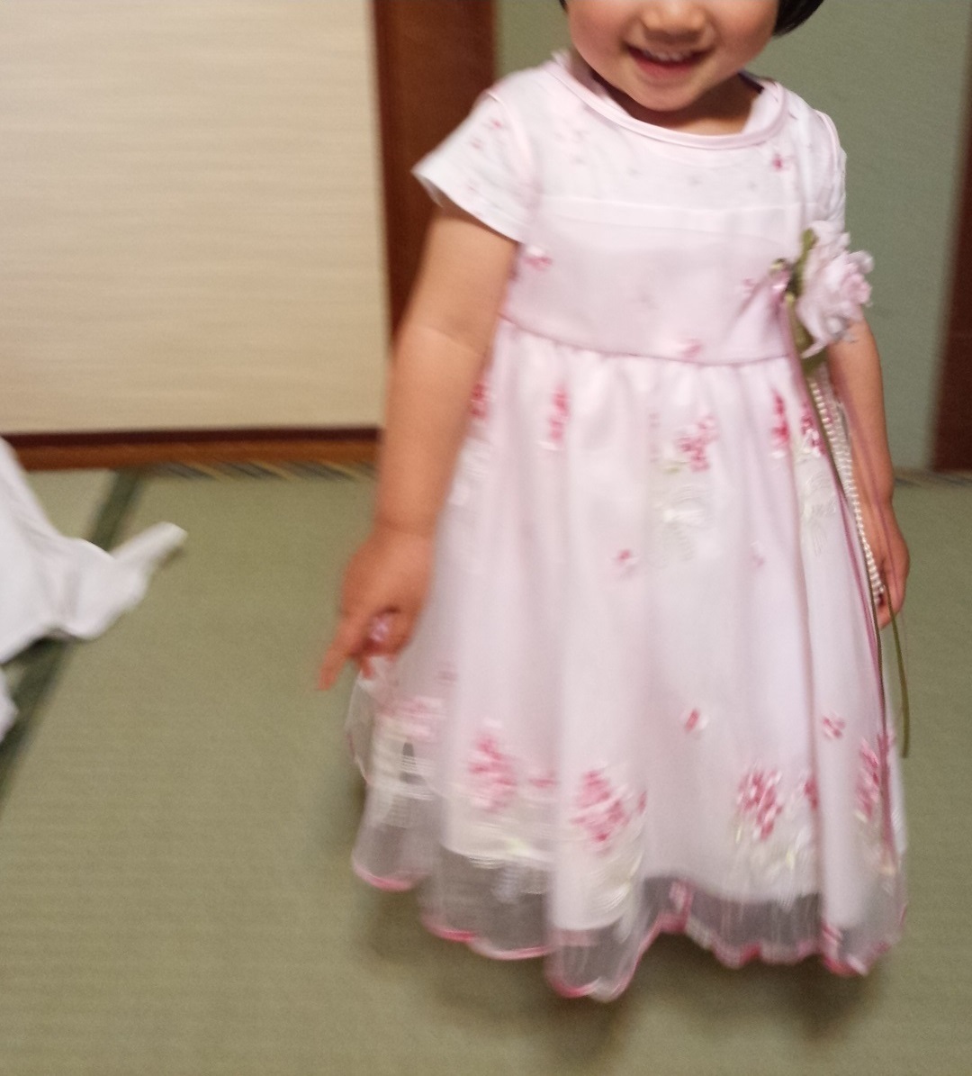 ヨメが着替えて、娘も従姉妹に借りたドレスを着て式場のあたりに向かう