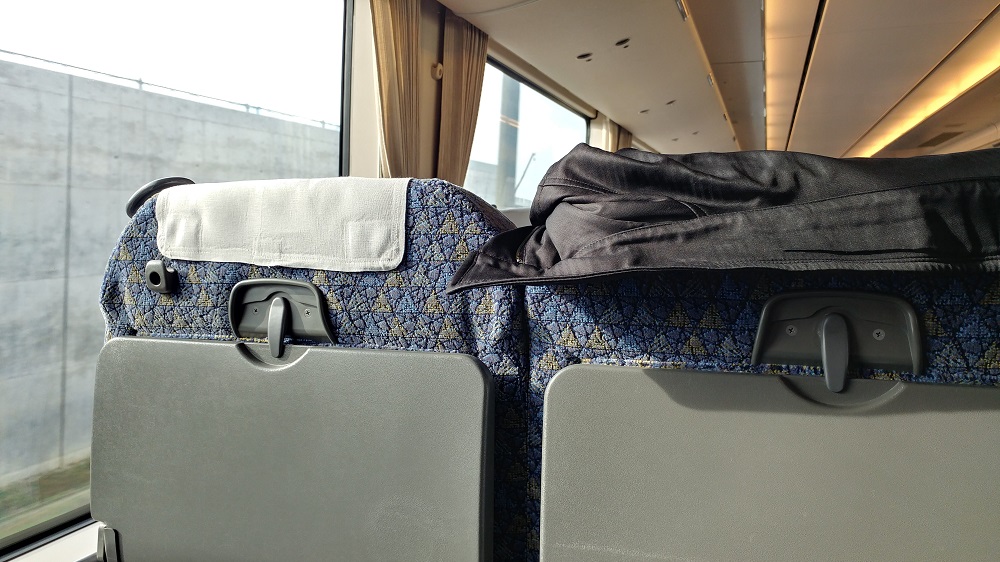家族と合流した時に、2人掛けの席を二つ ボックス席にしたいので前の席に金沢で買ったおやつと、コートをかけて誰か居るように装い、私は後ろの席でなるべく仏頂面で横に人が来ないように座り込む なんとゆーか最高にマヌケ
