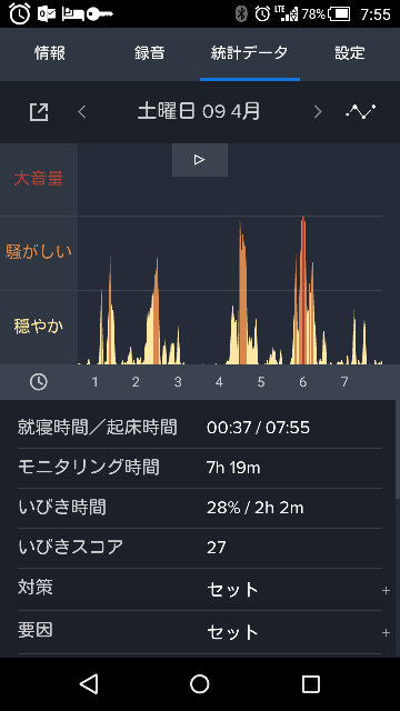いびきスコアというのがあり、最初は20だったのが5まで改善していた