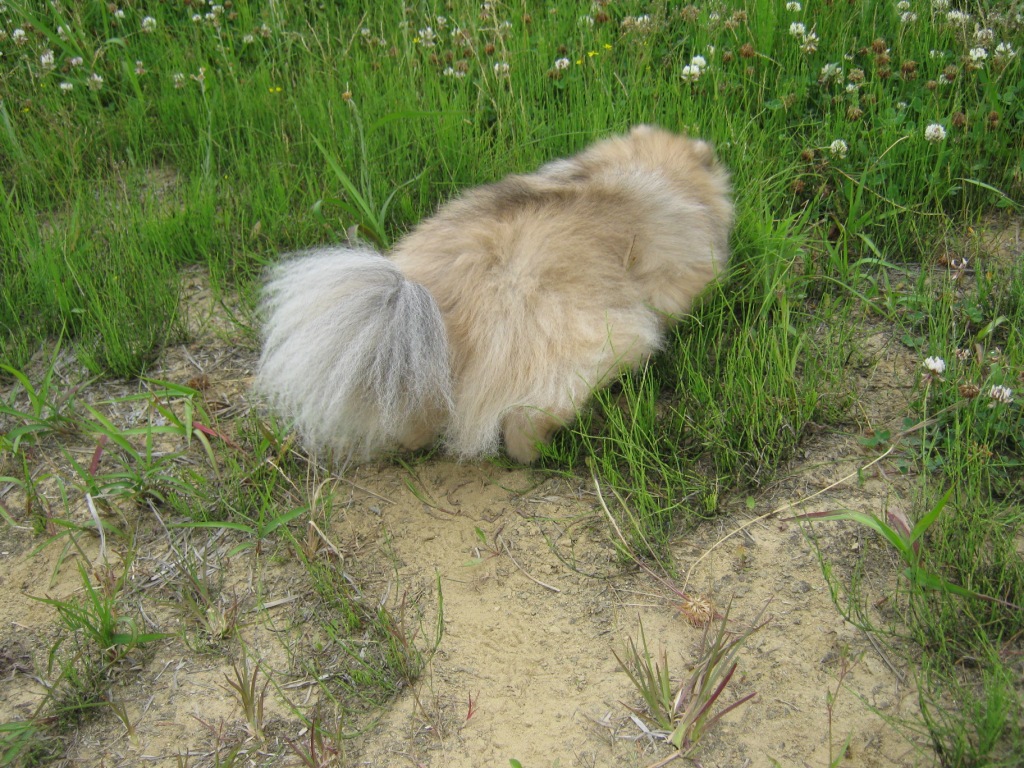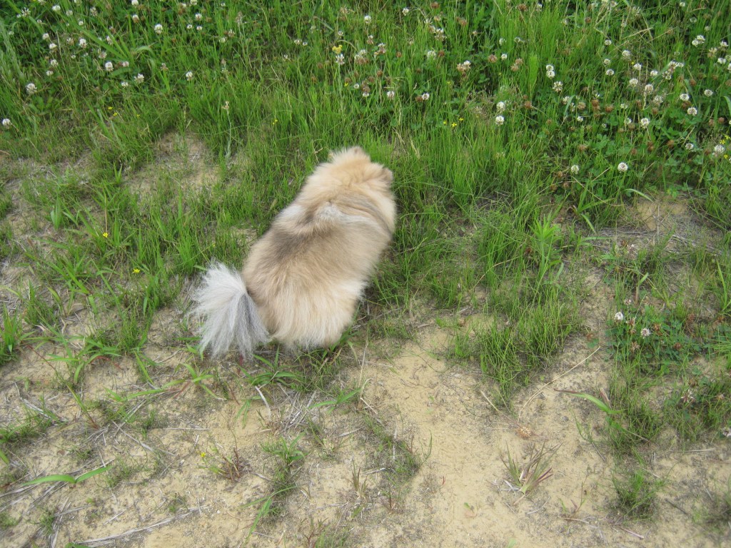 当のエリはツバメの糞が気になるらしく匂い嗅ぐのに必死でツバメに気づいてなかったが・・・