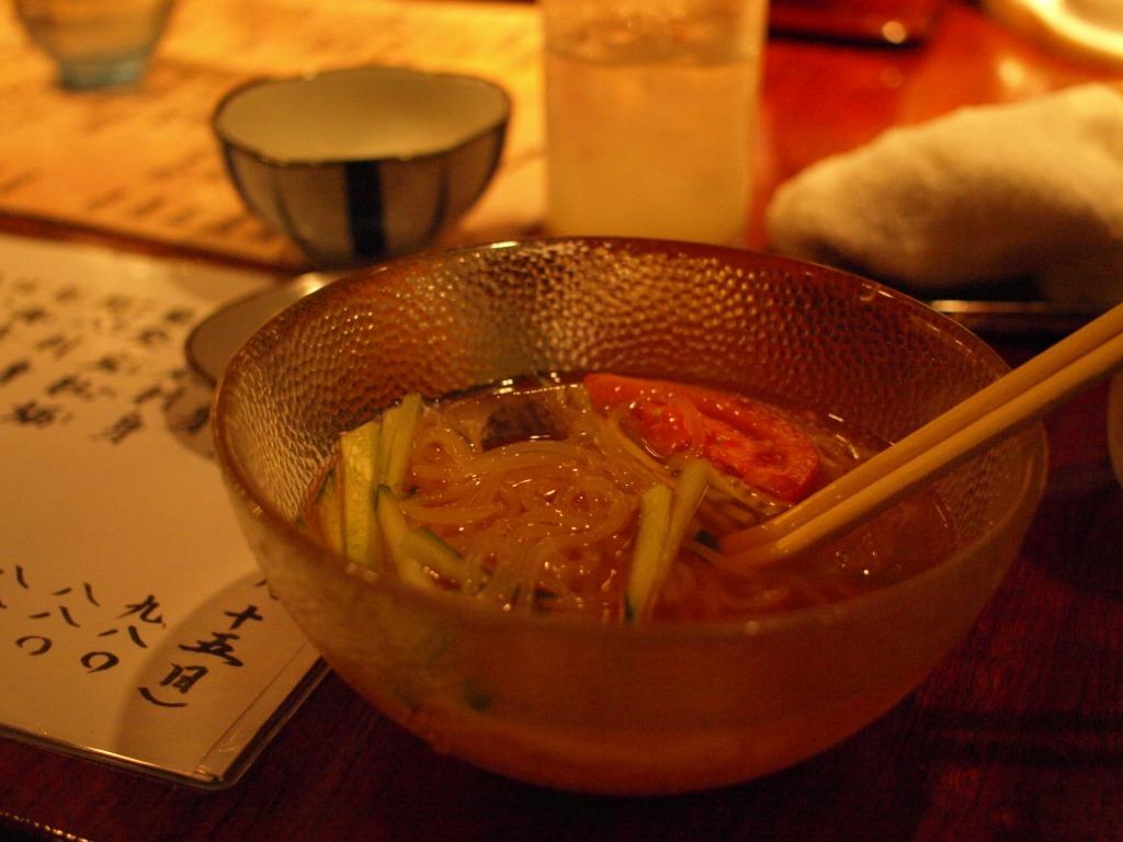 メニューにあった盛岡冷麺を注文した友人。なにも、富山で食べなくても・・・