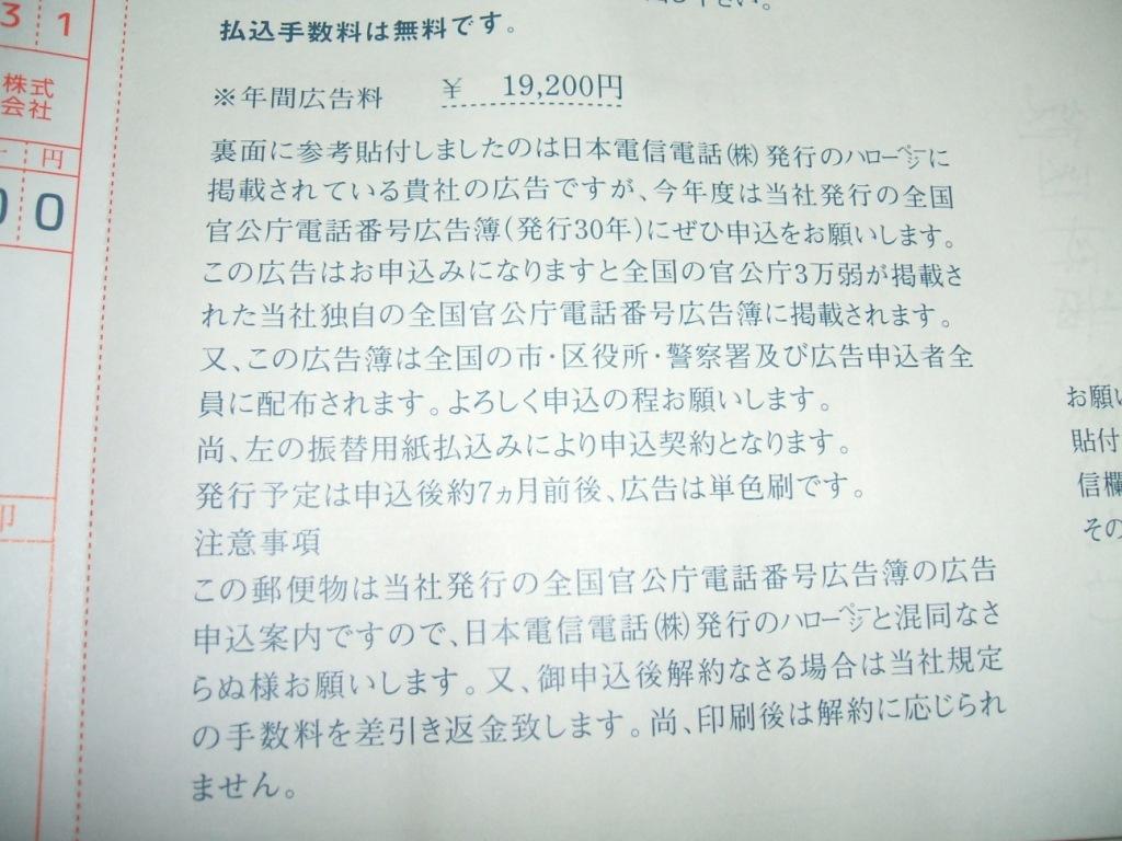 コレをNTTの電話丁の広告代金だと勘違いして金を払う事に期待している。