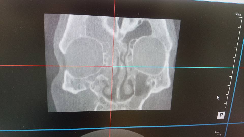 右の上顎洞が真っ白 つまり、はなが溜まっているという事である