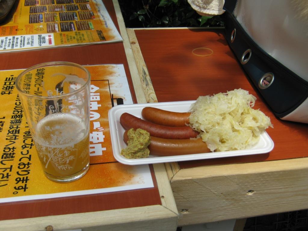 ビアフェスタ用に3本のソーセージの盛り合わせとザワークラウト
