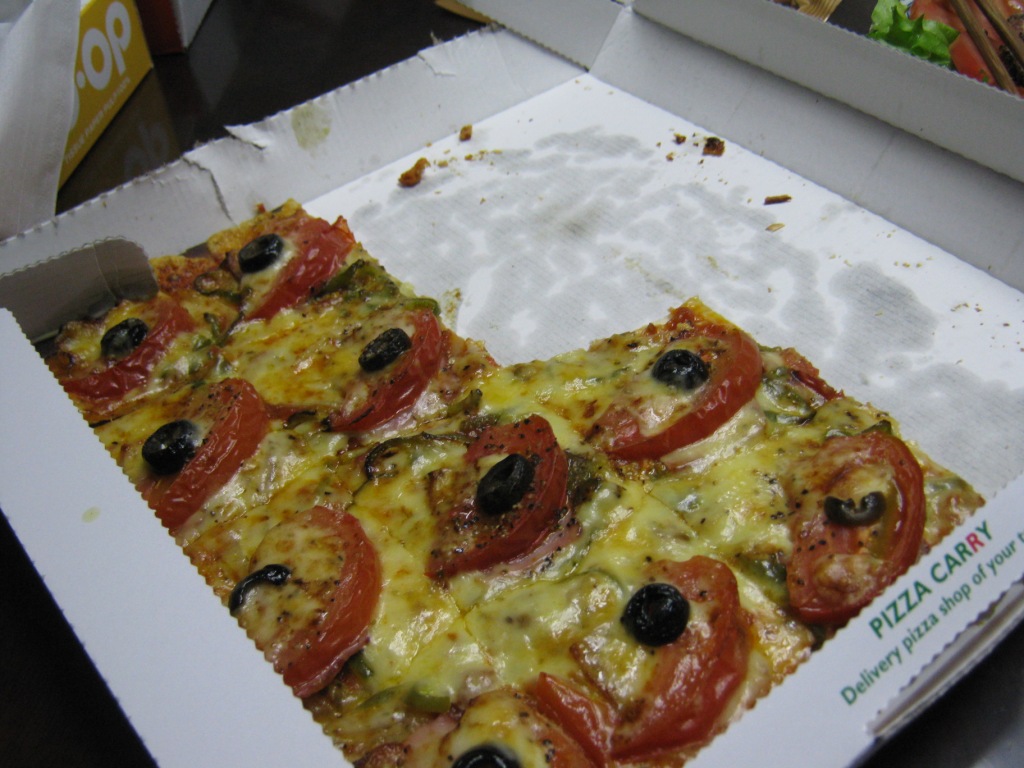 時間になったので駅南のピザ屋に注文したピザ買いに・・・