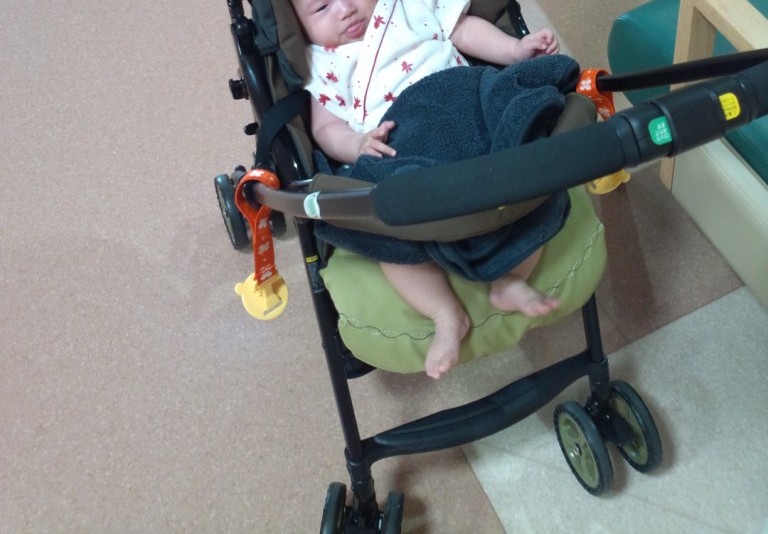 今回駐車は1本だけだったが、気を反らしたのが効いたのか泣かずにニコニコしていた・・・