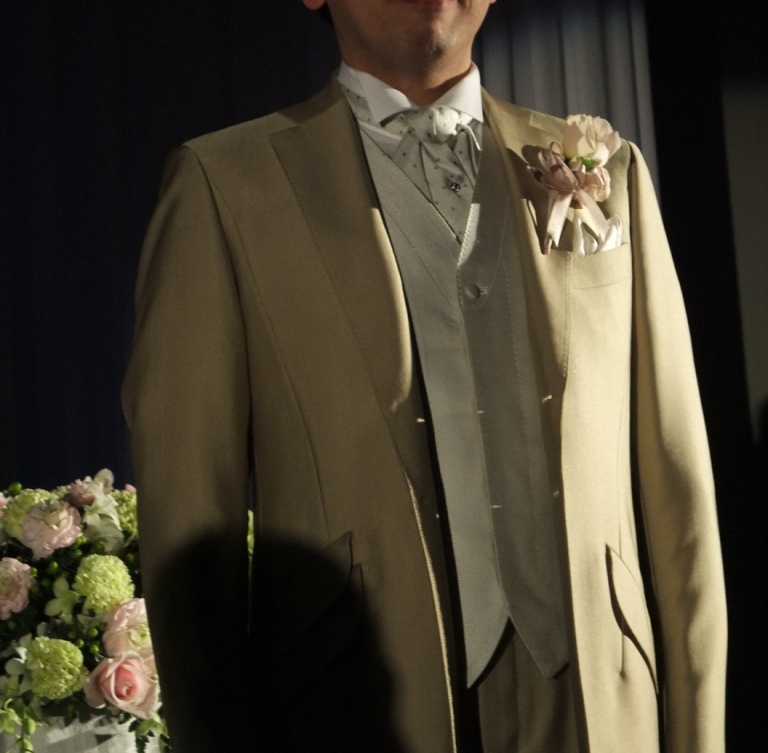 新郎新婦のお色直し 新婦の着替えに時間がかかるので新郎はただ待っているだけだろう 高砂には美味しい料理が次々と運ばれてるだろうに・・・