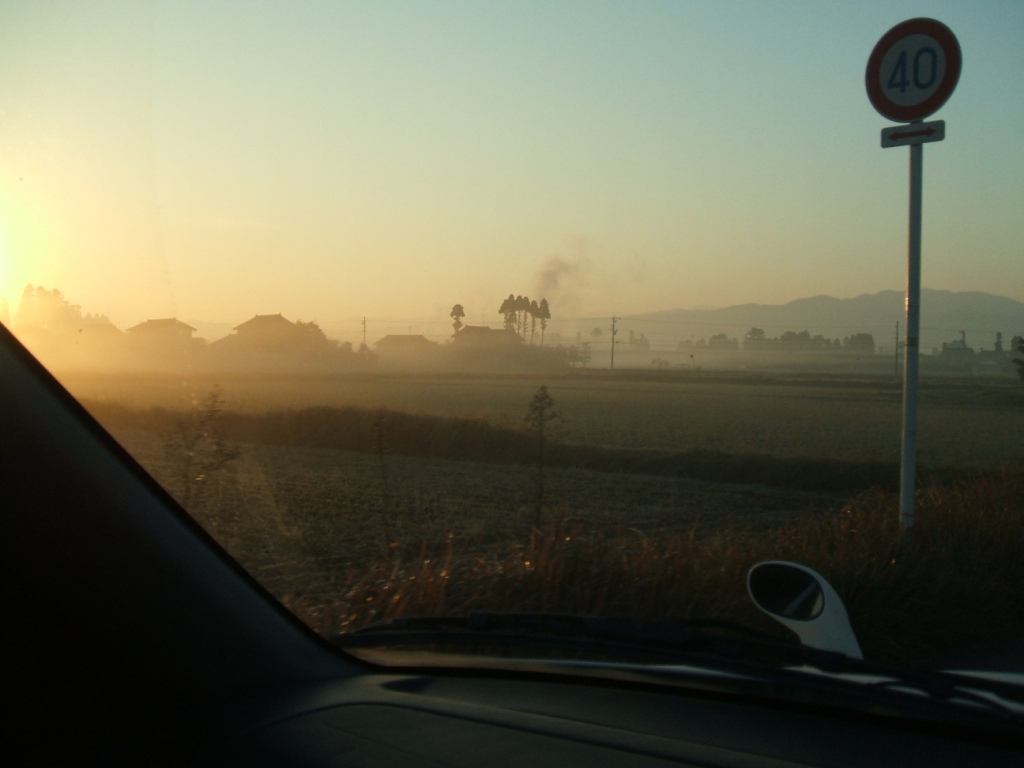 霧がたちこめていて、なんとなく幻想的な砺波平野。
