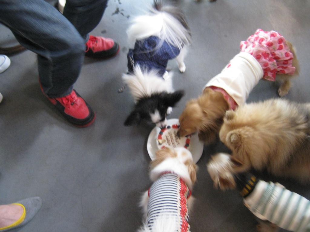 カフェ・ワンポイントでの誕生パーティーといえば犬達による犬用ケーキのホール食い大会