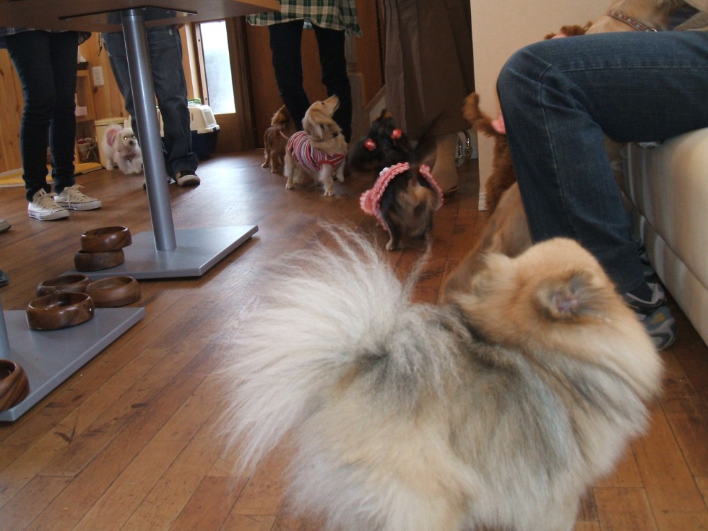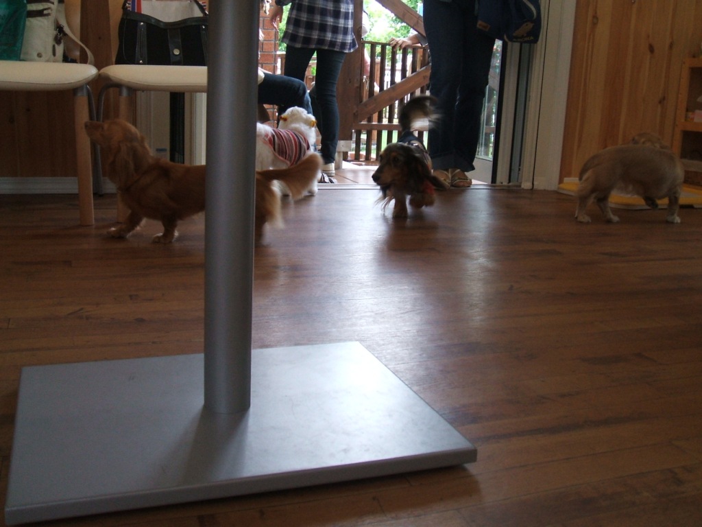 店内には先に2匹のダックスの親子(みるくちゃん達)が居たが、気後れすることなく合流