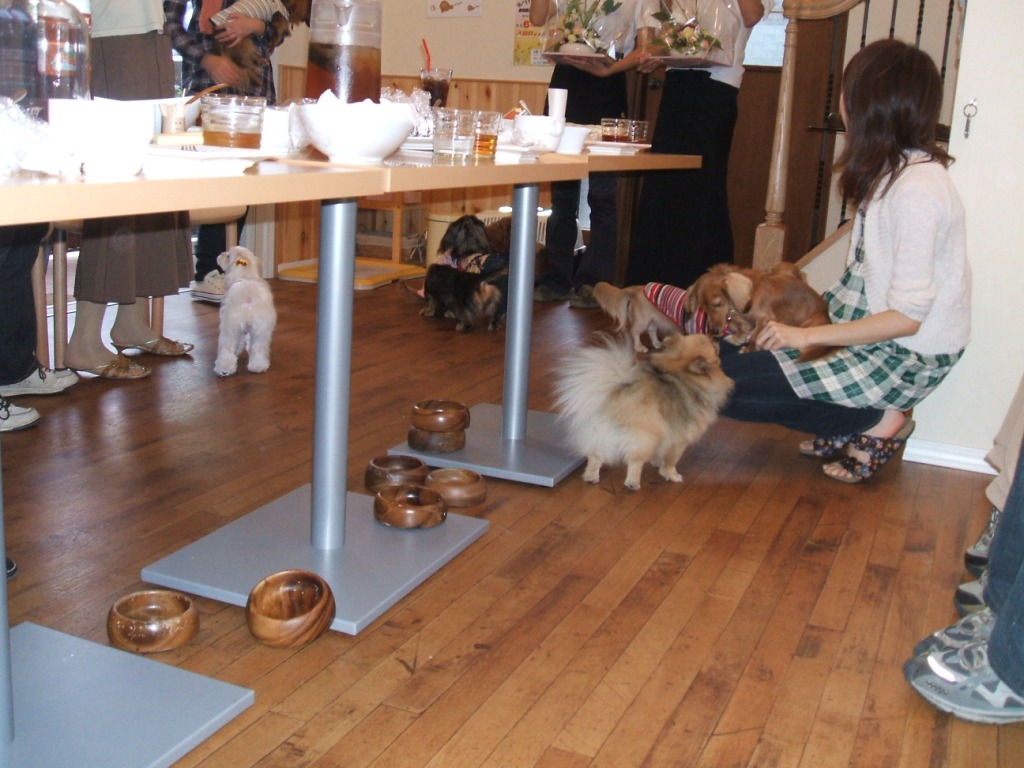 不思議なもので、喧嘩にはならない。同じ皿に2,3匹が口突っ込んでる光景もある。カフェでの犬同士のマナーでとか紳士協定みたいなものでもあるのか?おまいら。