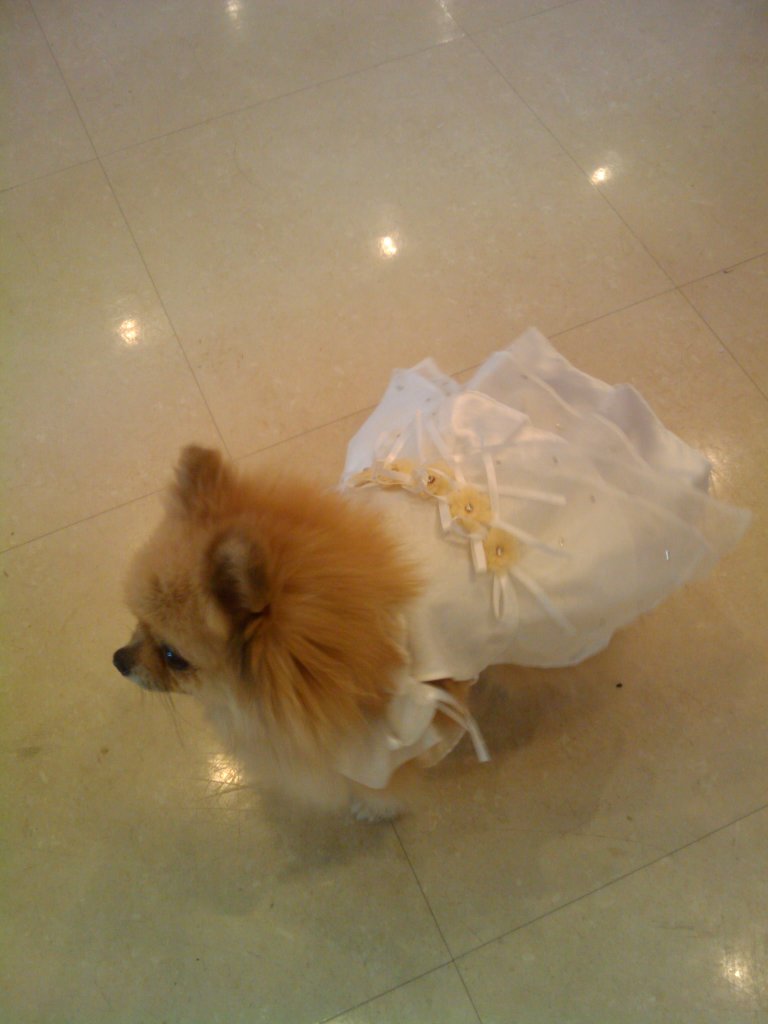 ポメは毛がフサフサなので、服はちょっと大きいサイズがいい