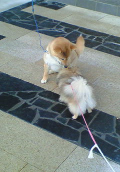 接近させてみたがエリは恐がった、向こうは喜んでいる風だが。
