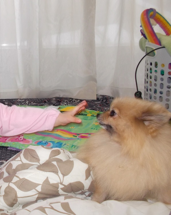 未熟なはいはいをしながらエリを見て笑い声をあげてた娘