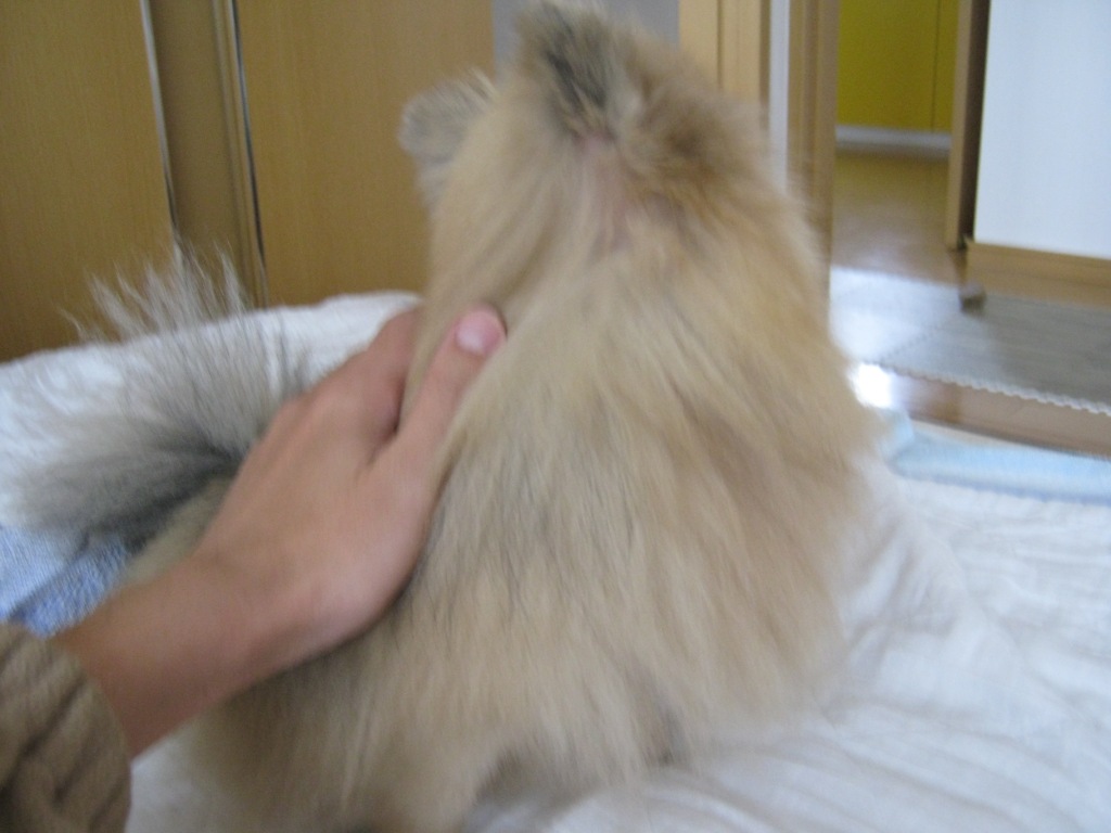 エリはウルフセーブルというかクリーム系統のポメだからそれほど似合わないかもしれない・・・でも毛が多いから大丈夫なハズ
