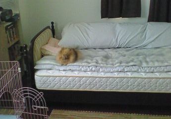 朝、エリがトイレに起きた後ベッドの周りをうろつく