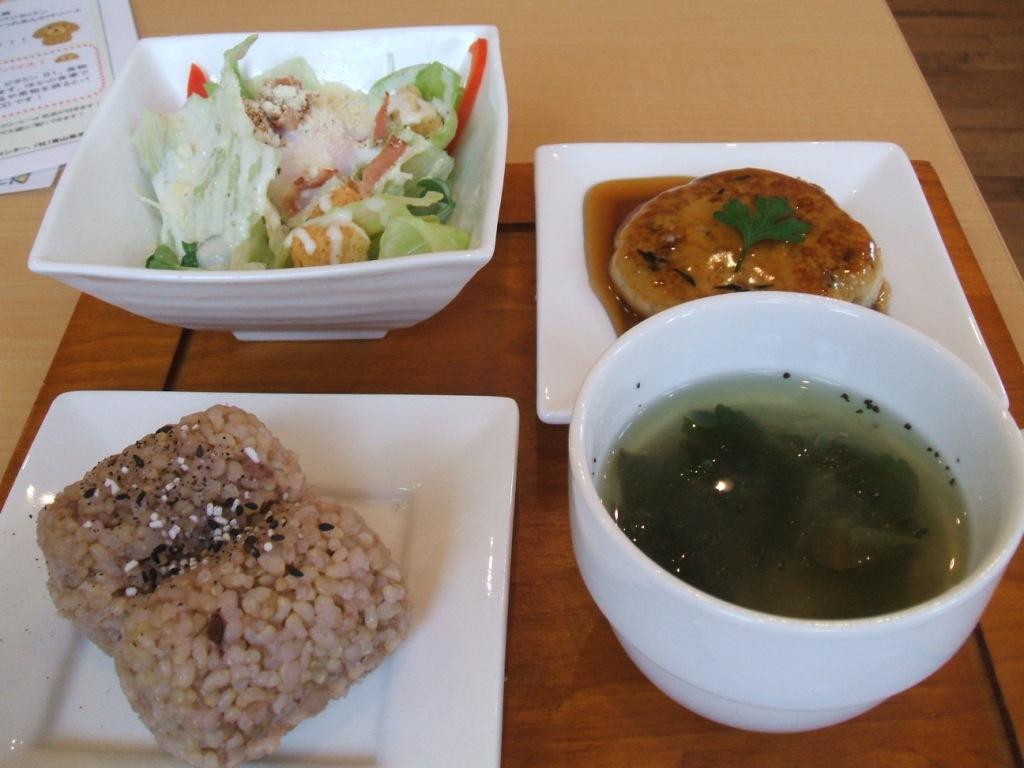 ハンバーグは豆腐ハンバーグを使ってある。