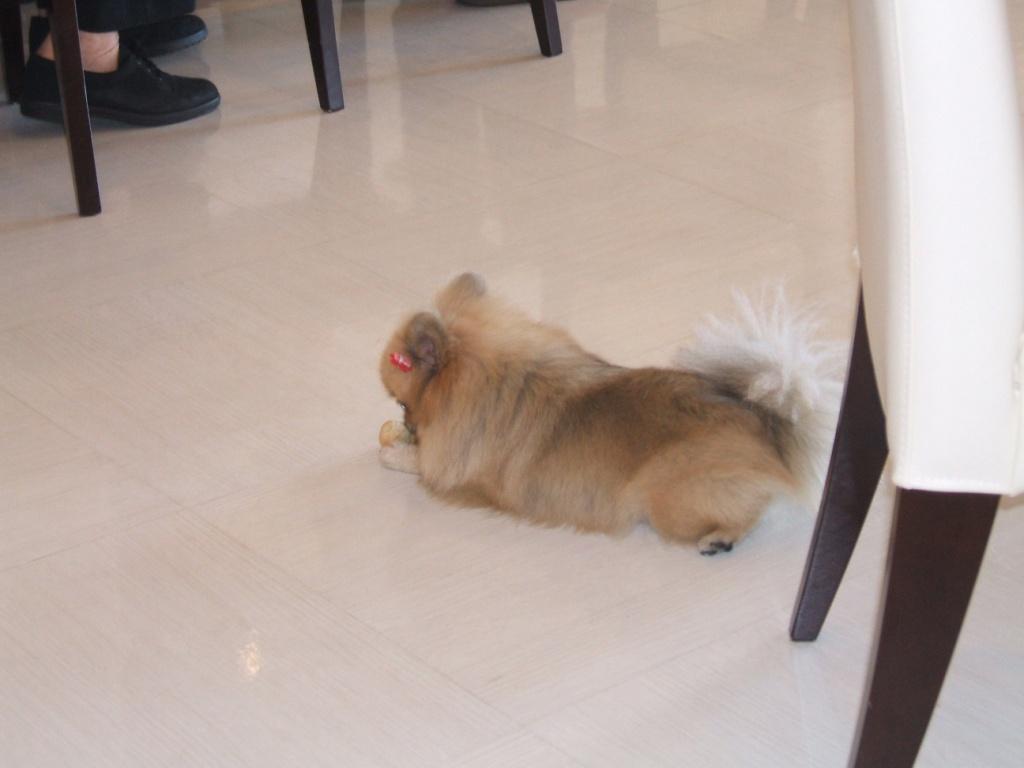 私らもエリも食事を終え、再びチワワにちょっかい出すエリ。