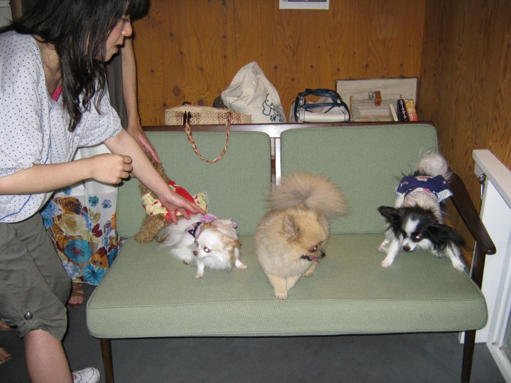 その後、犬たち集めて記念写真撮ろうという事になり皆をソファーに乗せる