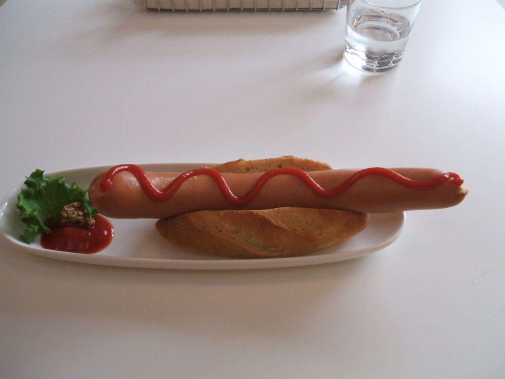 大きなホットドッグというのを注文・・・流石にでかい、パンは普通の大きさ。