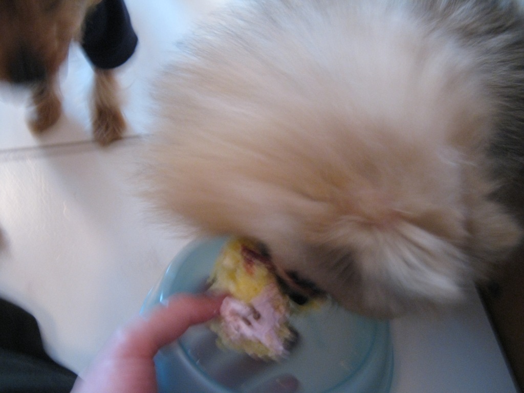 バニラちゃんの飼い主さんから不審な物体を切り分けて戴く