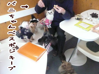 で、カフェに着くとバニラちゃんが先客に・・・そしてポッコちゃんとこつぶちゃん・・・夏以来の組み合わせだ