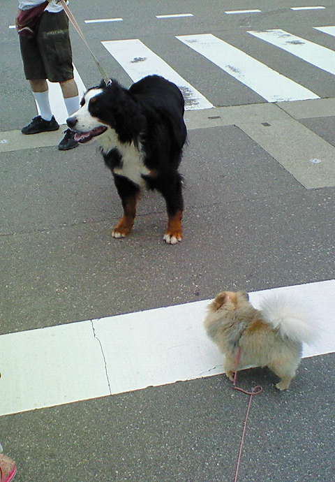 おやおや、困ったもんだ 道路に出ないのが利口な犬だ。
