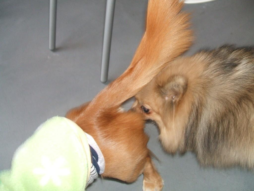 しかし、努力のかいあって他の犬にも少しは馴染めるようになっている。