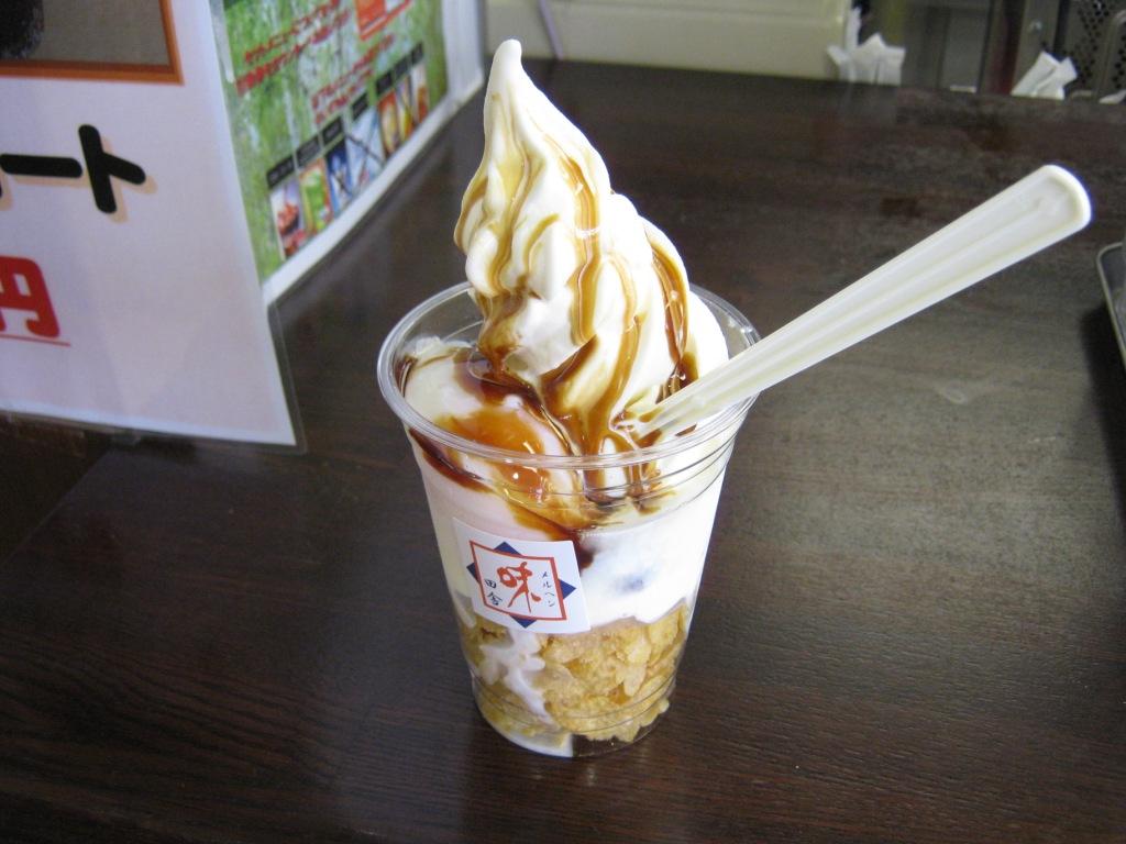温玉ソフト、アイスにかける醤油をかけて食べる スゲー美味かった