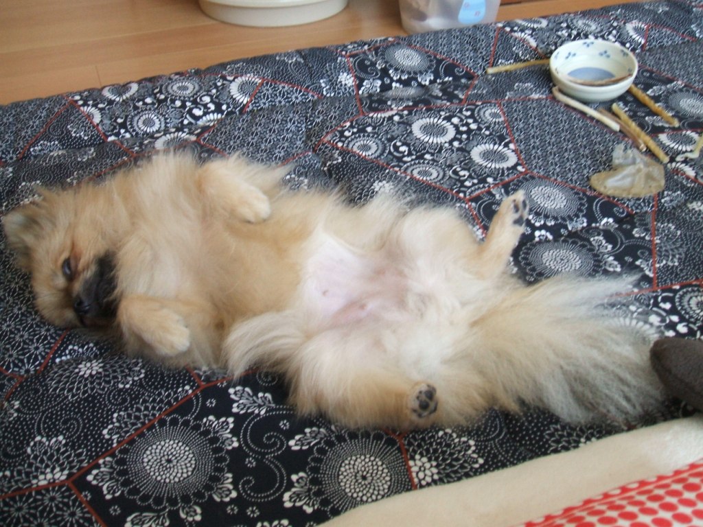 たっぷり遊んでだらしなく寝ていた様・・テメーご主人様居ないの判ってるか?